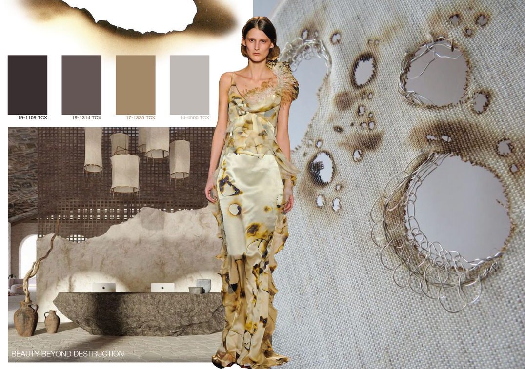 Ik heb het keuzedeel Artwork en Dessin gedaan. Hier krijg je dan een paar weken specifieke lessen in. Hier heb ik geleerd om veel verschillende patronen te maken. De opdracht die we daarvoor kregen was 10 patronen maken. Deze patronen moesten gemaakt worden naar aanleiding van een thema. Mijn thema was Beauty Beyond Destruction. Hier zie je de schoonheid achter de verwoesting. Ik heb eerst een moodboard gemaakt en daarvan heb ik 10 verschillende patronen gemaakt.