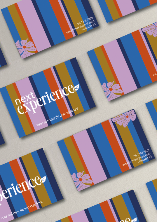 Voor dit project moesten we een huisstijl maken voor een bedrijf. Mijn bedrijf heette de Next Experience. Ik heb een print gemaakt en naar aanleiding van deze print ben ik aan de gang gegaan met een logo, visitekaartje en verpakking. De stijl voor dit project was modern en eclectisch. De stijl is mooi terug te zien.
